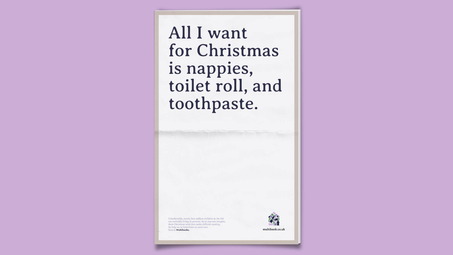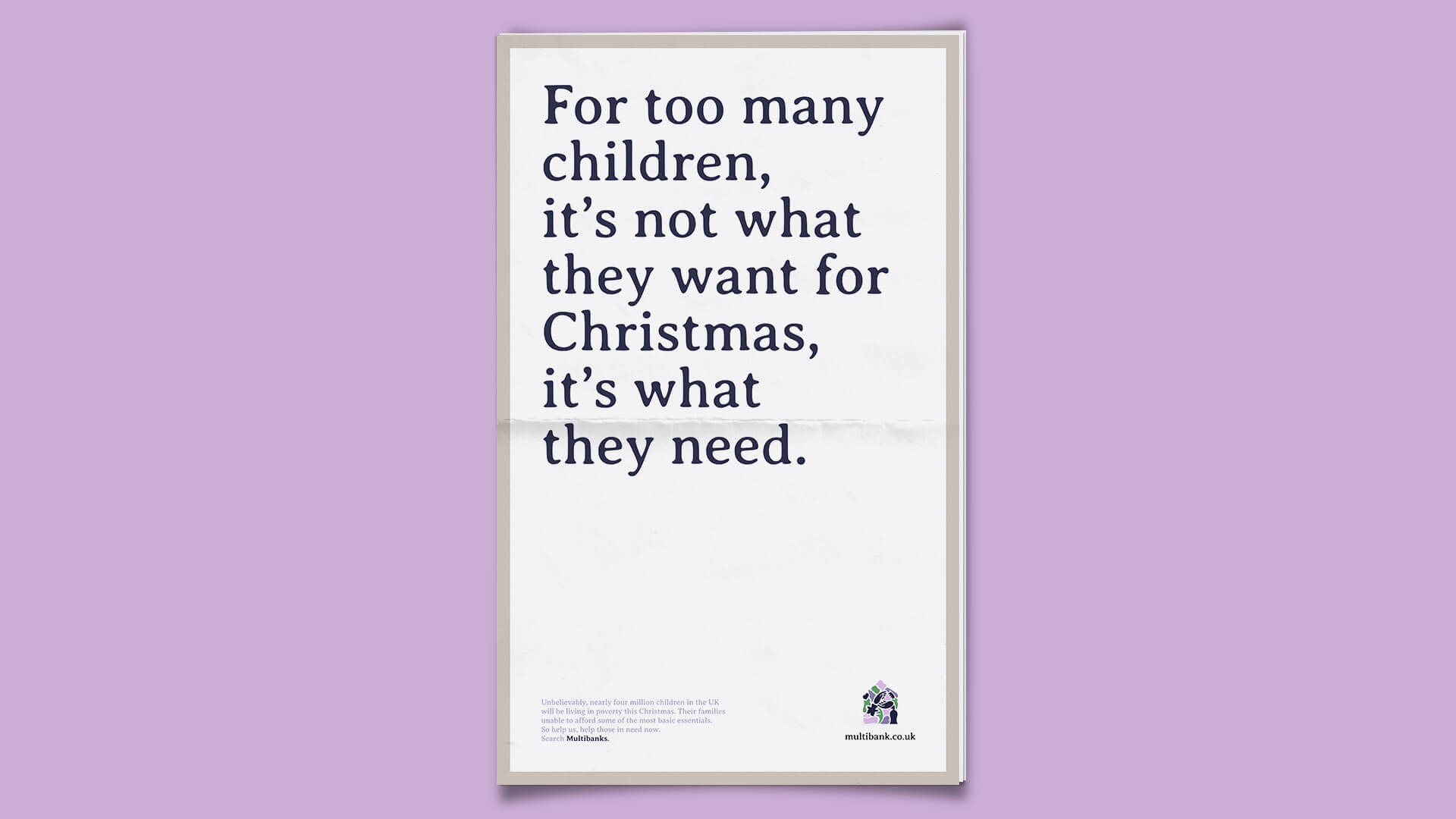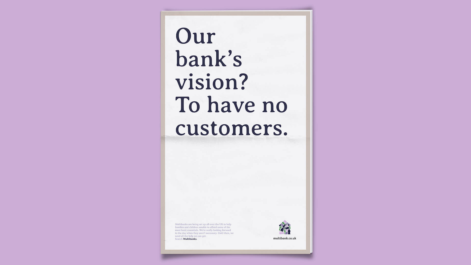 A print campaign designed to run across the FT, Daily Mail and Sunday Times for the Multibank initiative working to reduce the effects of poverty across the UK.